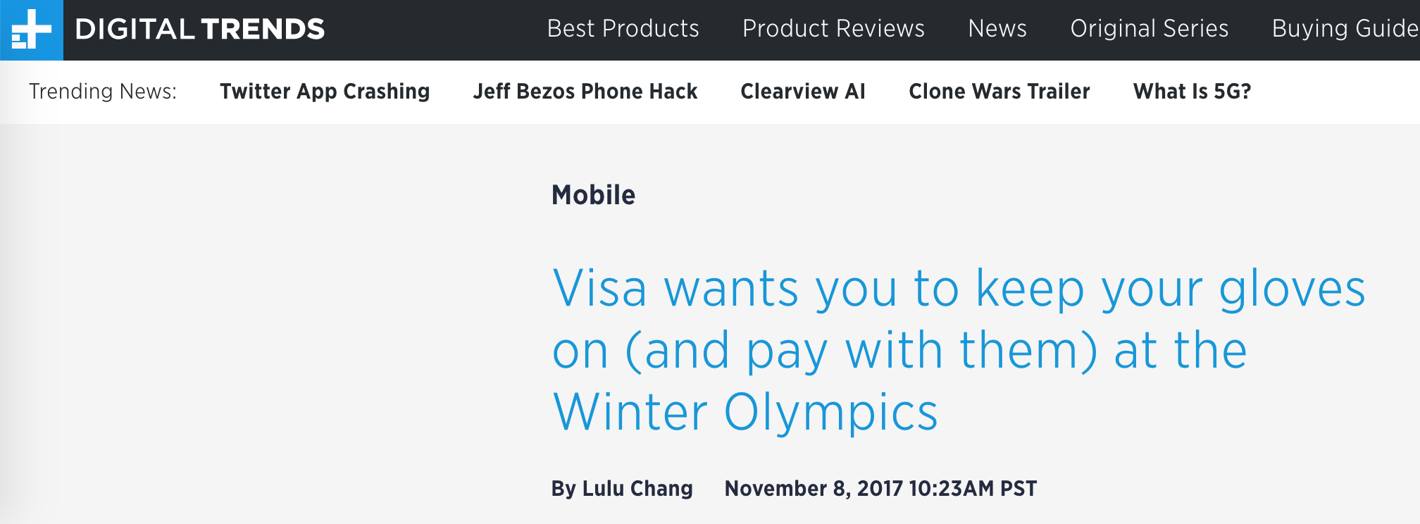 We created gloves with built-in Visa payment technology for the 2018 winter Olympics so you can stay warm at the games while you shop.